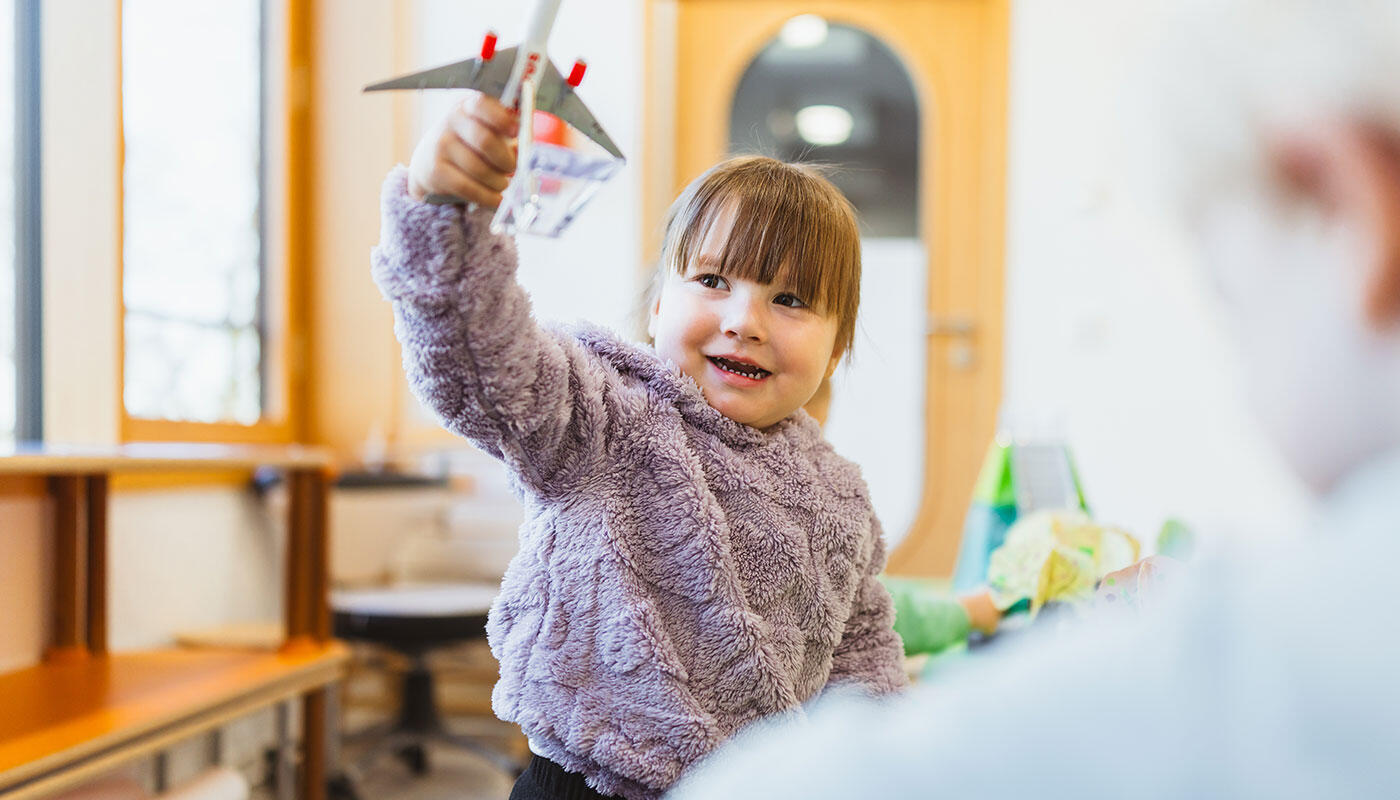 Der Flughafen selbst ist dabei nicht nur spannendes Umfeld für die Kleinen, sondern auch immer wieder Thema im Betreuungsalltag: So unternimmt das Kita-Team gerne kleine Ausflüge, zum Beispiel zur Besucherterrasse im Terminal 2 oder zum Spielplatz am Besucherhügel. "Wenn wir die Möglichkeit bekommen, besuchen wir auch gerne mit den Kindern besondere Orte und Firmen bzw. Behörden. Wir durften schon auf die Polizeiwache und zur Feuerwehr. Das ist dann natürlich für alle Kinder ein ganz besonderes Erlebnis", berichtet die Kita-Leiterin.