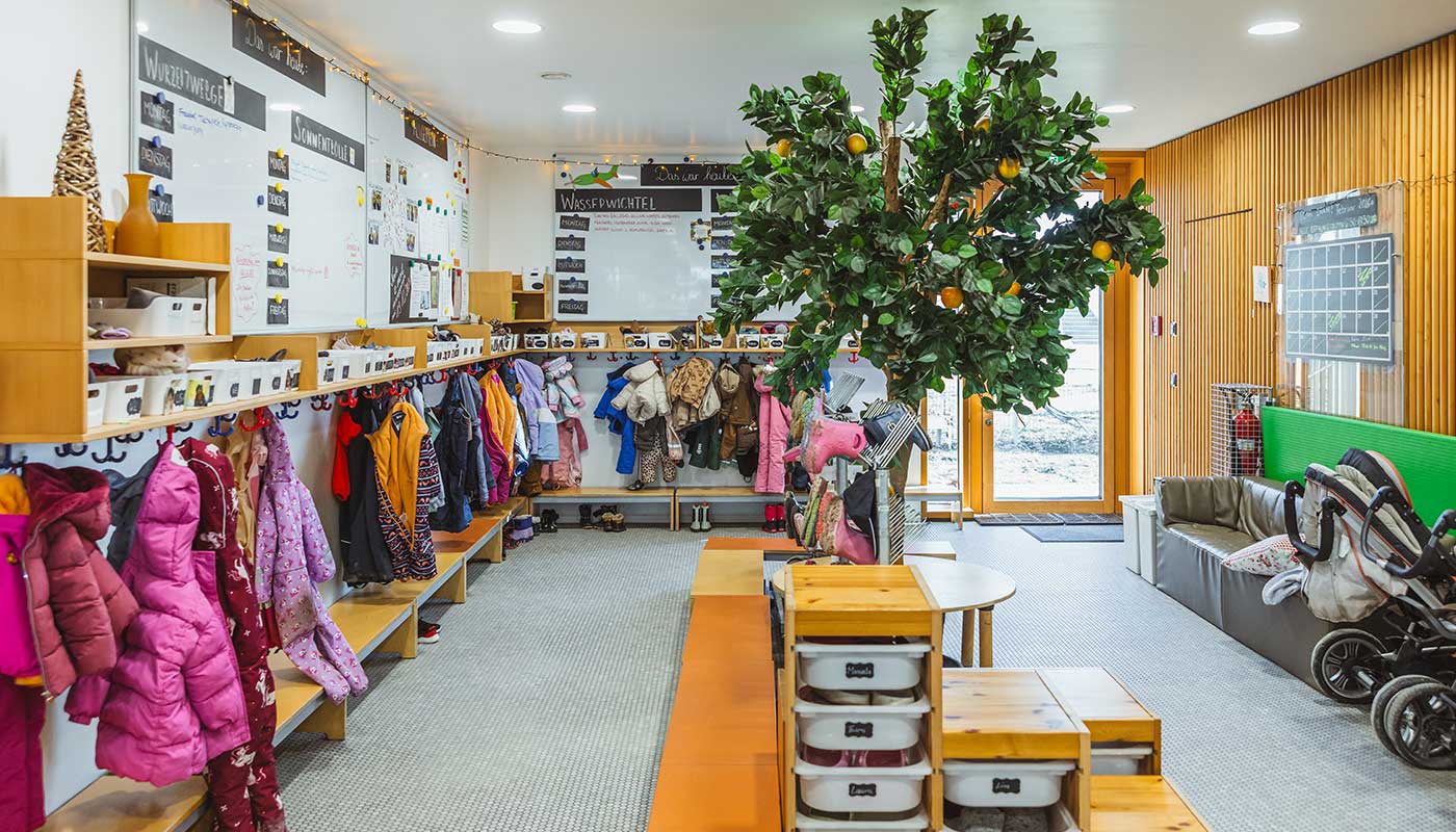 Wenige Schließtage, verlässliche Betreuungsmodelle und ein pädagogisches Konzept, das sich am Alltag der Kinder orientiert – die Airport-Hopser bieten ideale Rahmenbedingungen, auch für Kolleg:innen, die im Schichtdienst tätig sind. Die Einrichtung ist zwischen sechs und 18 Uhr geöffnet und eine Buchung ist für drei, vier oder fünf Tage pro Woche möglich. In der Einrichtung, deren Träger das Bayrische Rote Kreuz ist, werden bis zu 48 Kinder im Alter von acht Wochen bis vier Jahren – bis zum Übertritt in den Kindergarten – in vier altersgemischten Gruppen betreut. Voraussetzung für die Aufnahme ist, dass mindestens ein Elternteil am Flughafen München arbeitet.