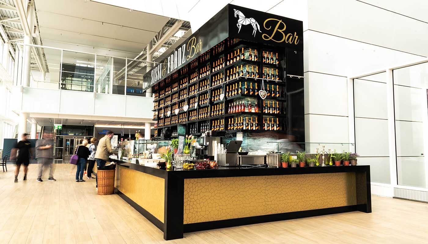 Ob als Treffpunkt vor dem Flug, für einen Espresso zwischendurch oder ein Glas zum Ausklang – die Sissi & Franz Bar verbindet Wiener Kaffeehauskultur mit internationalem Flair und lädt zum stilvollen Verweilen ein.